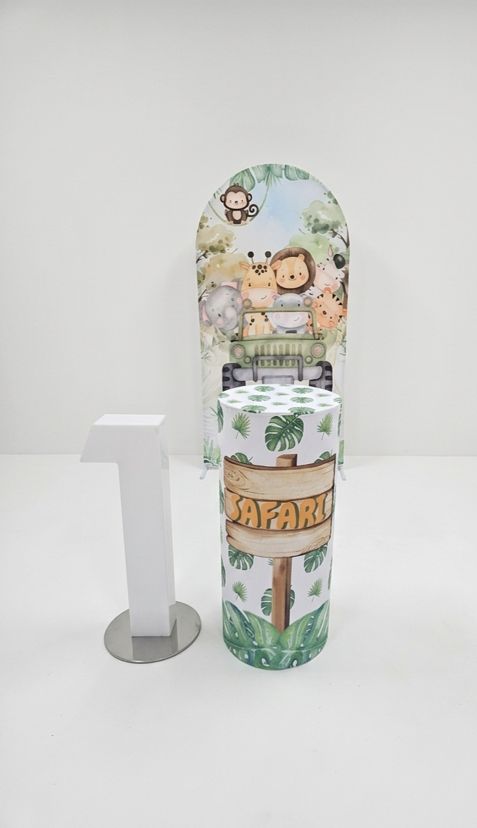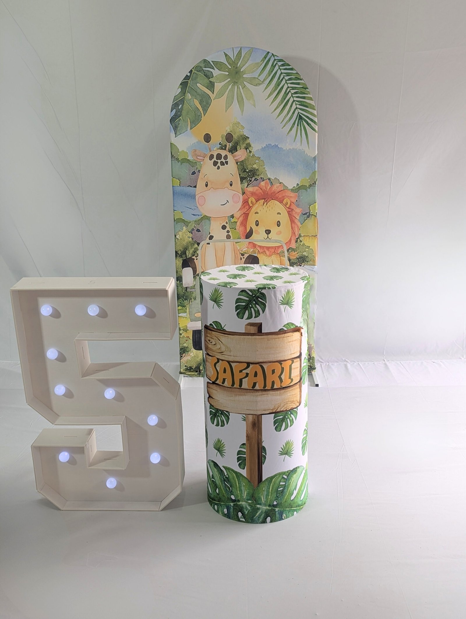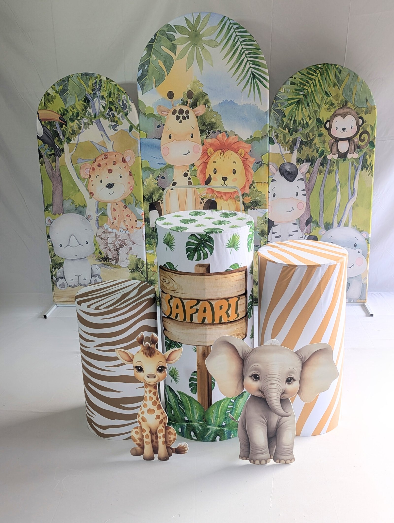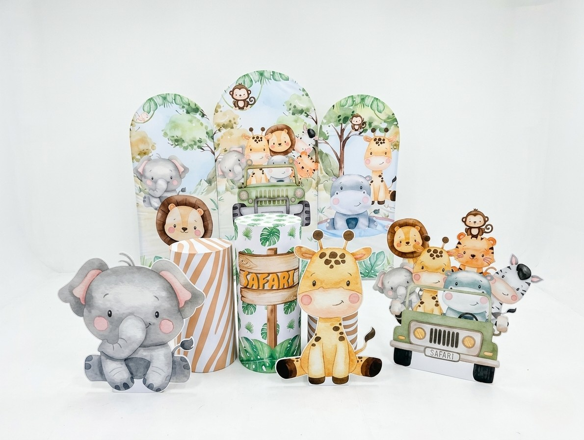 A mix of greenery, safari props, and bold colours creates an exciting atmosphere.